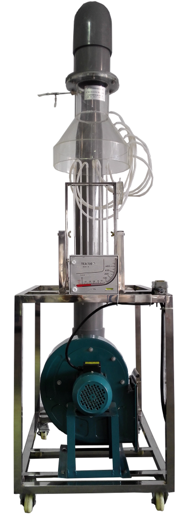 局部抽吸排風(fēng)罩、畢托管、壓差計(jì)、低噪音多翼風(fēng)機(jī)、管路、斜管微壓計(jì)、調(diào)節(jié)風(fēng)門、高度尺、不銹鋼實(shí)驗(yàn)臺(tái)架。